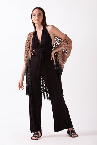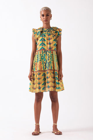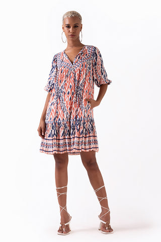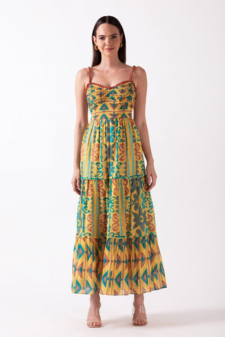LARYSA SMOCKED MAXI DRESS - HALTER NECK TIER RUFFLED MAXI DRESS WITH SMOCKED WAIST