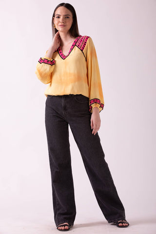 YULIA MAXI DRESS - TIERED MAXI DRESS WITH FLUTTER SLEEVES AND PLUNGING V-NECKLINE