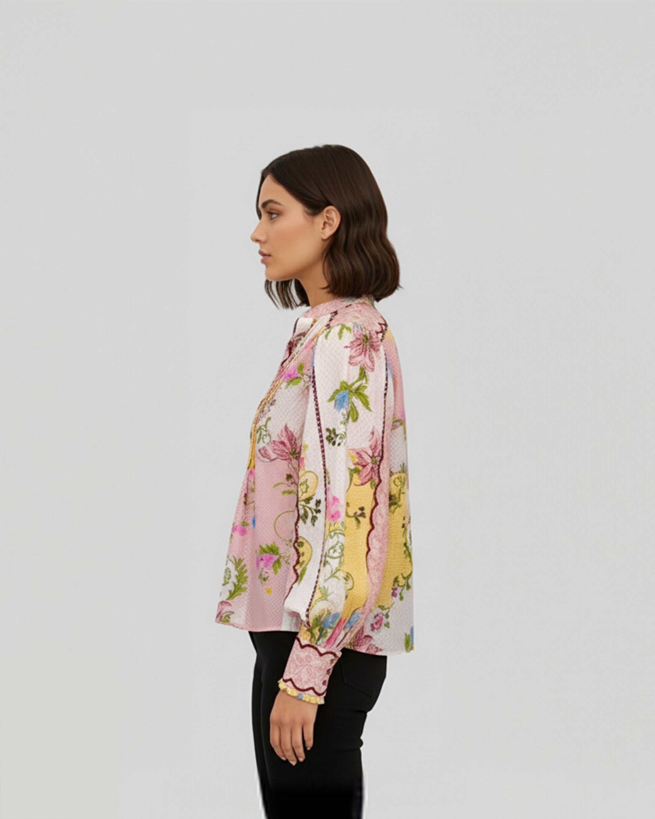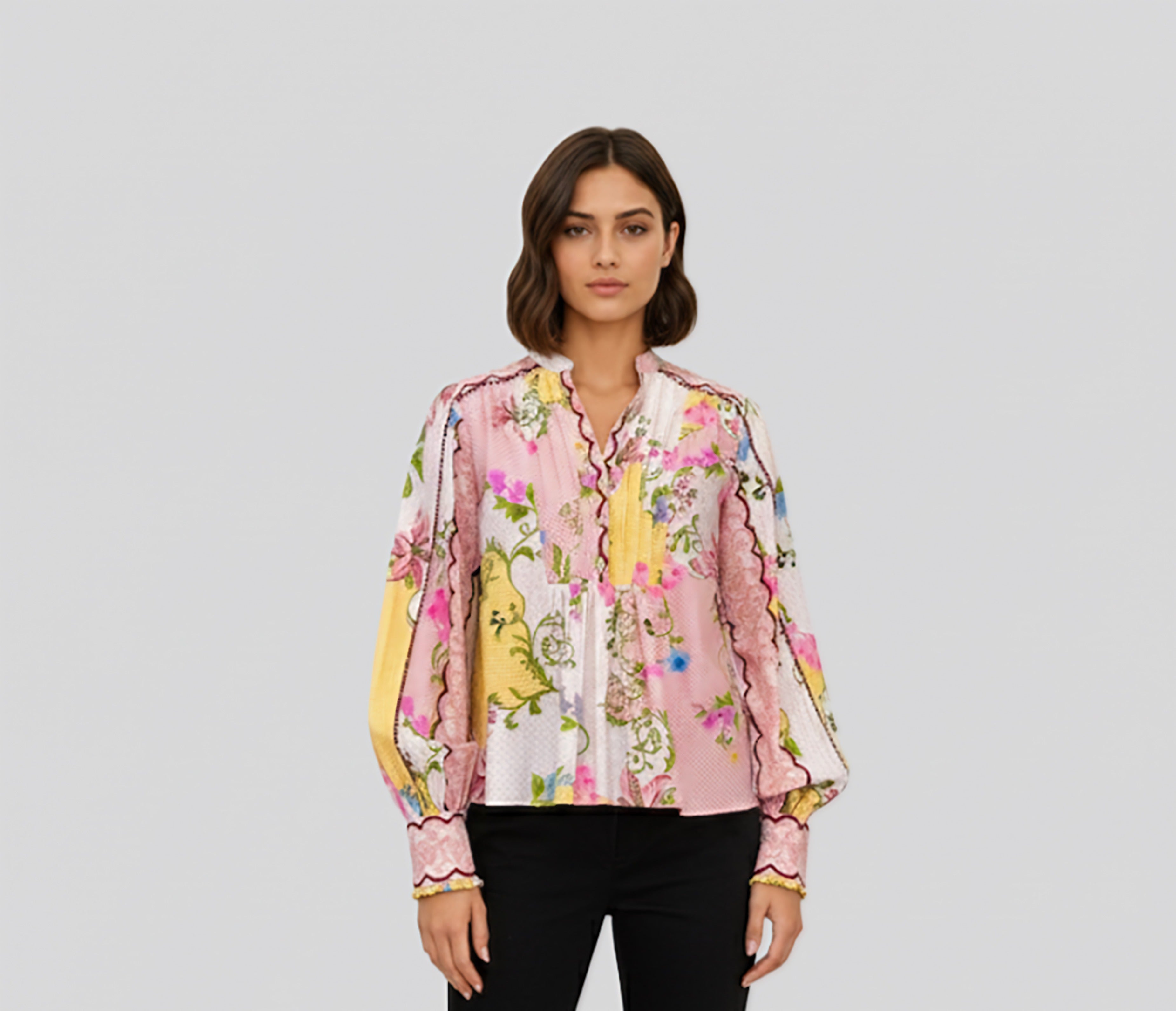 Crafted from a breezy 40s cotton slub, the Zoya Bloom Top is a charming and versatile piece. This top features a detailed pintuck yoke and delicate lace trim, creating a beautifully textured and romantic feel. The playful floral print and relaxed silhouette make it a perfect addition to your warm-weather wardrobe.